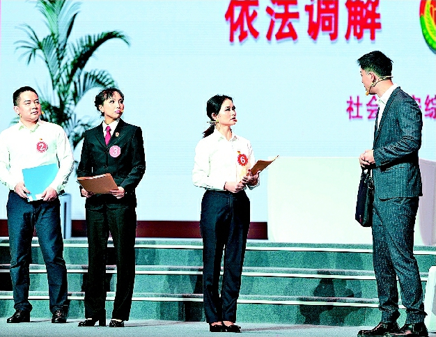 “我们理解你们,咱们一起想办法,把眼前的难关渡过去。”舞台上,绵阳代表队选手张海霞以人社调解员的身份轻声安抚劳动者,同时条理清晰地与企业方沟通。